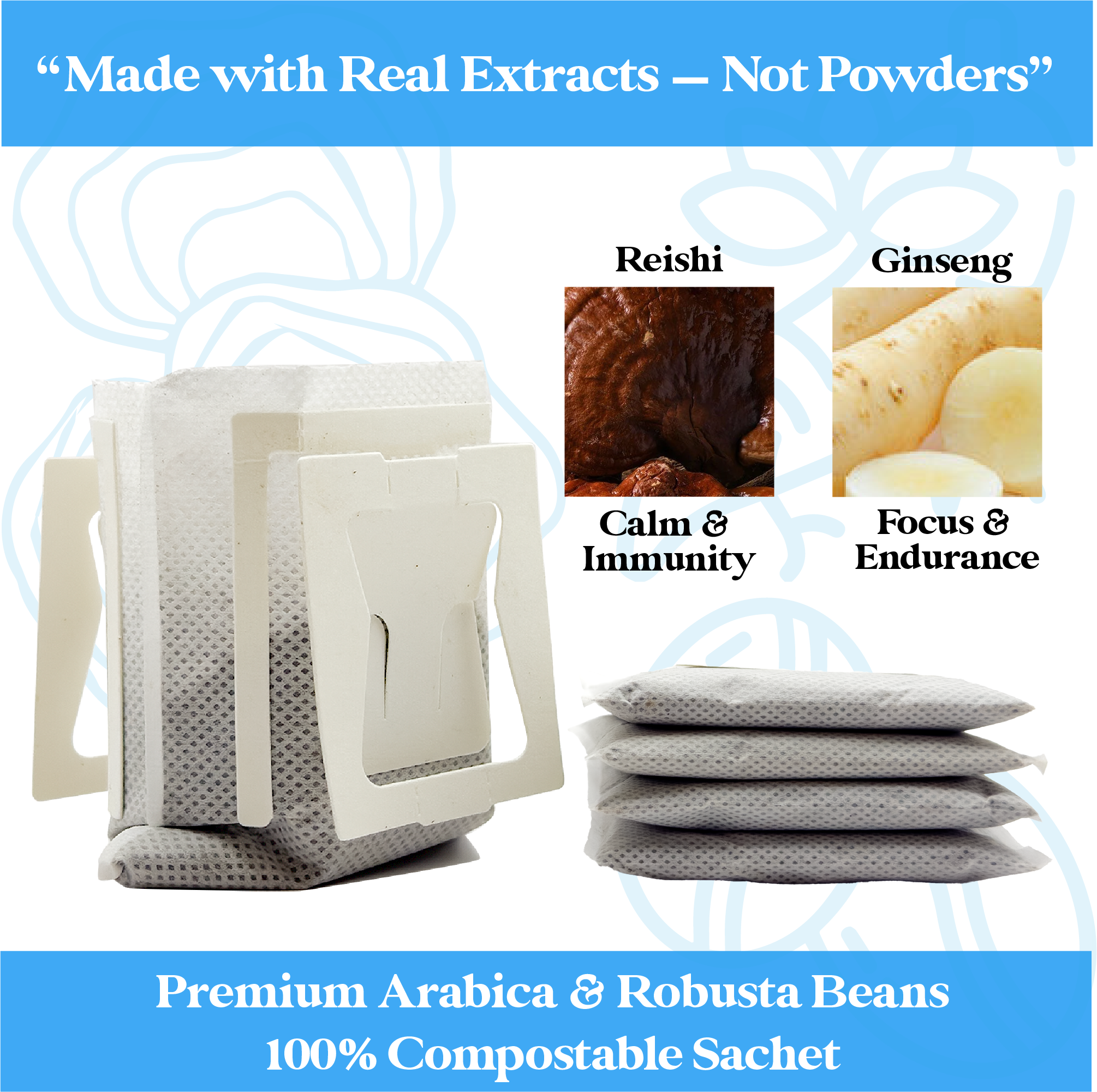 We infuse every filter with real Reishi and Ginseng extracts—not powders—for a clean energy boost that keeps your mind calm and focused.