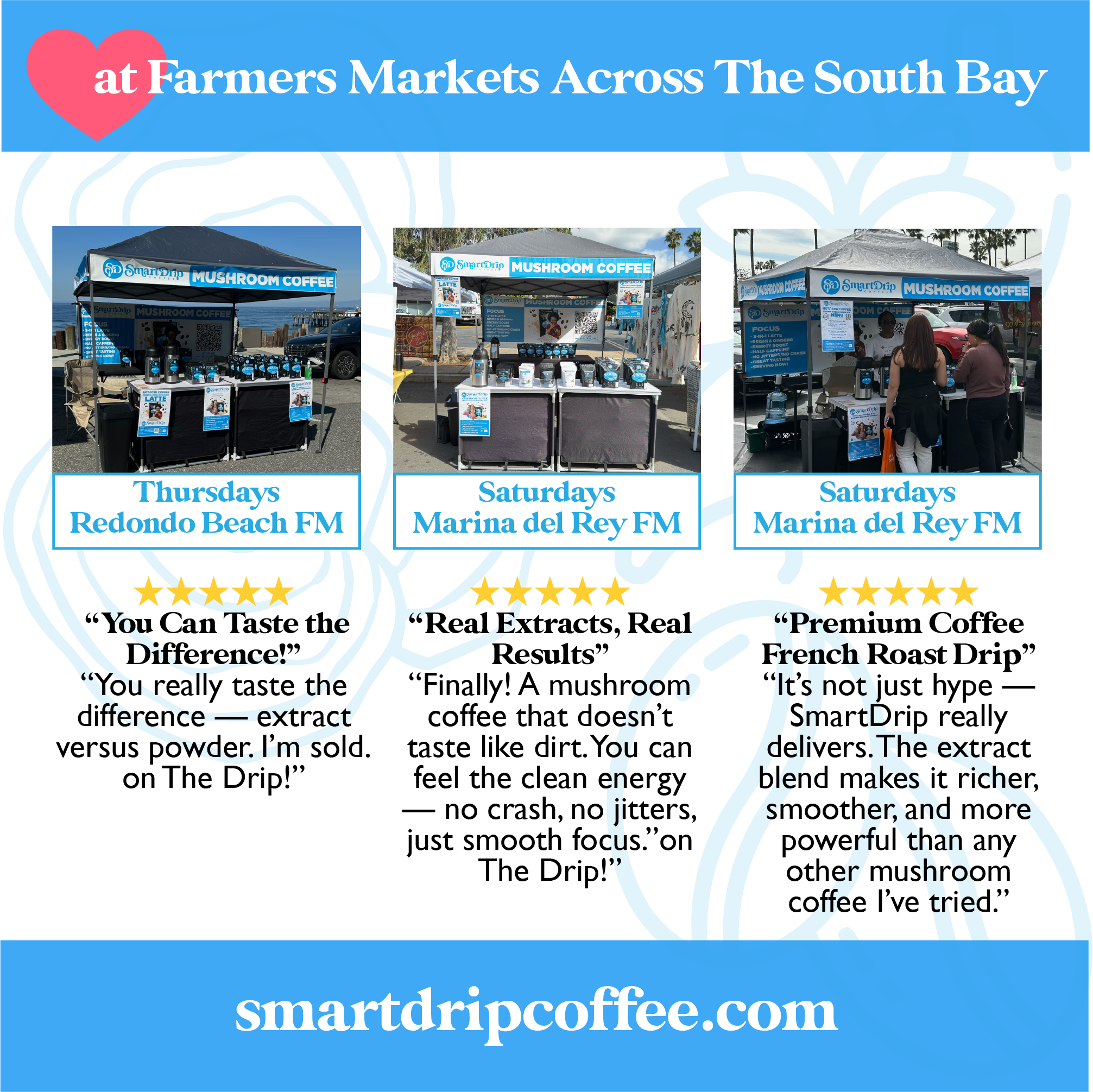 In our San Pedro home, we searched for mushroom coffee that was smooth, bold, and functional — but everything we tried came up short. So we built SmartDrip: a micro-roasted, real-extract French Roast crafted by our family, for families everywhere.